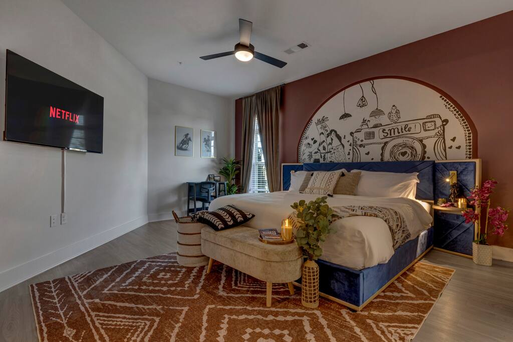 Step into your bright, modern Frisco escape just minutes from Universal. Drop your bags, let the kids claim the queen over queen bunk, and sink into the king bed later. Cook in the sleek kitchen, stream your favorites on the Smart TV, then head out to dining, shopping, and family fun. End the day unwinding at the pool, gym, and lounge in a cozy retreat made for work trips, park days, and relaxed family getaways.