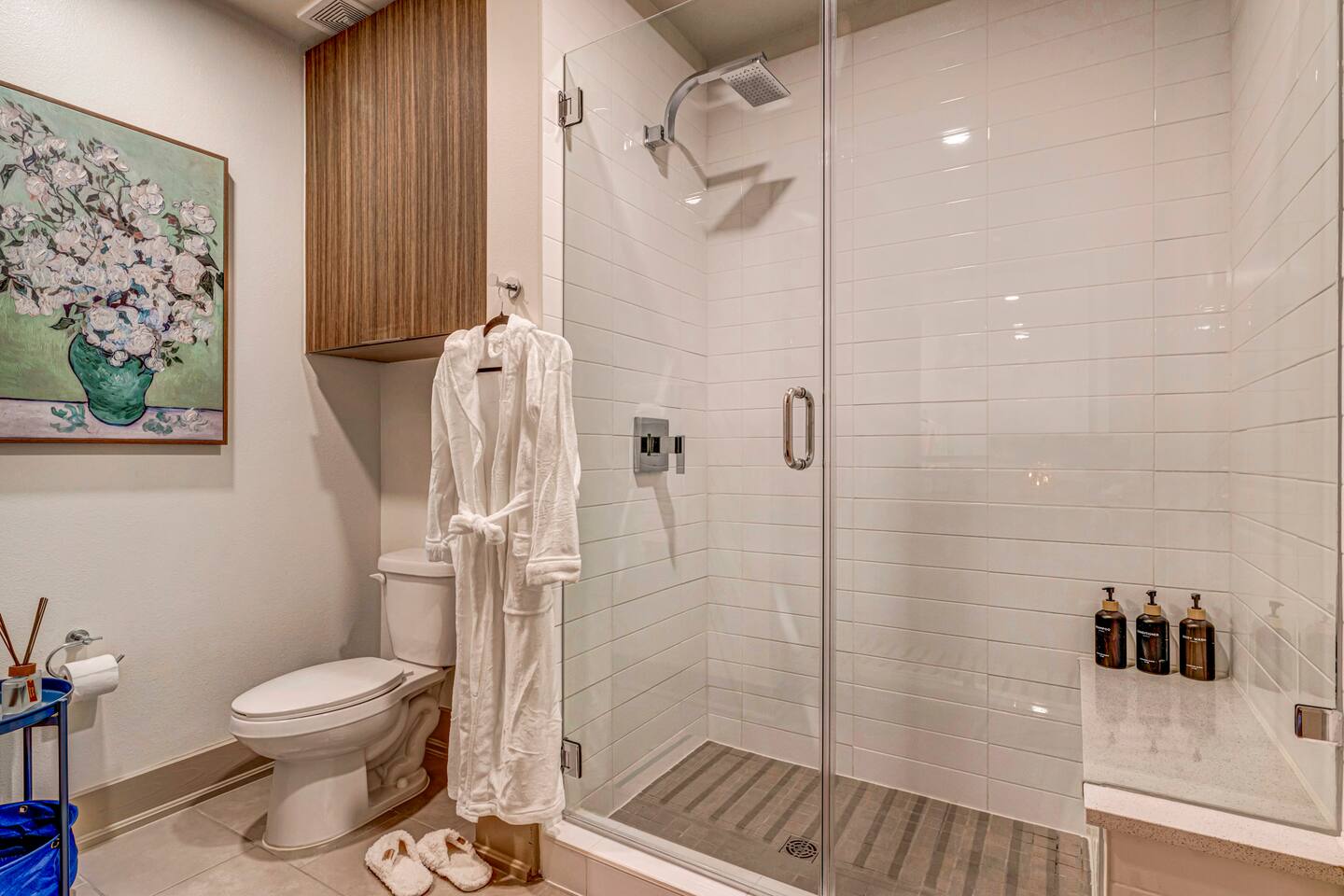 This high rise retreat is designed for connection, relaxation and a little bit of wow. The open living area is made for slow mornings and cozy evenings, whether you are curled up on the sofa with a good show on the Smart TV or unwinding on the comfy sofa after a day out. • Fully stocked modern kitchen ready for real cooking and long stays, with quality cookware, sharp knives and plenty of dishes and glassware • Coffee bar with a Ninja Espresso and Coffee Maker and Barista System that brews single serve coffee, Nespresso compatible espresso shots and specialty drinks, plus a built in frother for lattes and cappuccinos • Fast WiFi and a dedicated workspace so you can take calls, work remotely or stream without worry • In unit washer and dryer, central AC and heat and a spa like bathroom with plush towels and premium toiletries • Access to resort style amenities including a beautiful pool area, fitness center and stylish common lounges when you want to spread out a bit more Dreamy Sleeping Space Settle in and recharge on a plush mattress with hotel quality linens and thoughtful touches that make it easy to unwind. • Bedroom with a comfy king bed and Smart TV • Living room with a sofa bed for extra guests if needed • Soft bedding, extra pillows and cozy blankets so everyone sleeps well Guest Access You will have private access to the entire apartment plus shared access to building amenities during your stay. • Simple, secure self check in with a smart lock • Parking available in the attached garage, with full details provided before arrival Please make yourself at home and treat the space with the same care you would your own. The Neighborhood This home sits in the heart of the Legacy West area, one of the most vibrant spots in North Texas. Step outside and you are moments away from dining, shopping and entertainment. Nearby: • Legacy West shops and restaurants a short walk away • Legacy Hall food hall about a five minute walk or quick drive • The Star in Frisco about ten minutes by car • Stonebriar Centre Mall about ten minutes by car • Downtown Dallas about twenty five to thirty minutes by car • DFW Airport about twenty five minutes by car • Dallas Love Field about twenty five minutes by car It is a perfect base for business trips, staycations, relocation stays or a weekend away in the middle of it all.